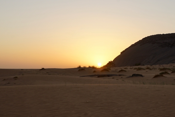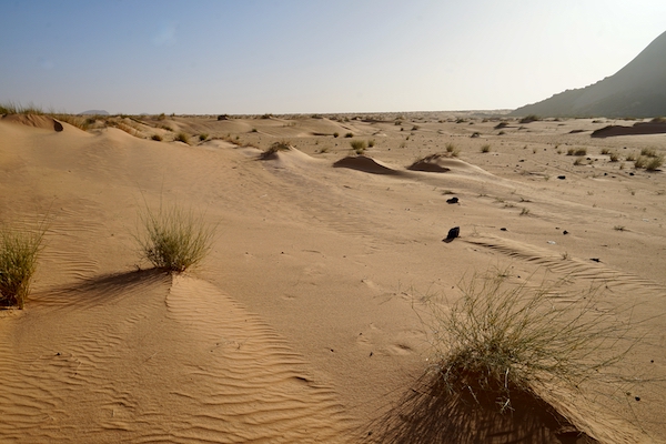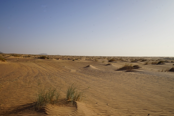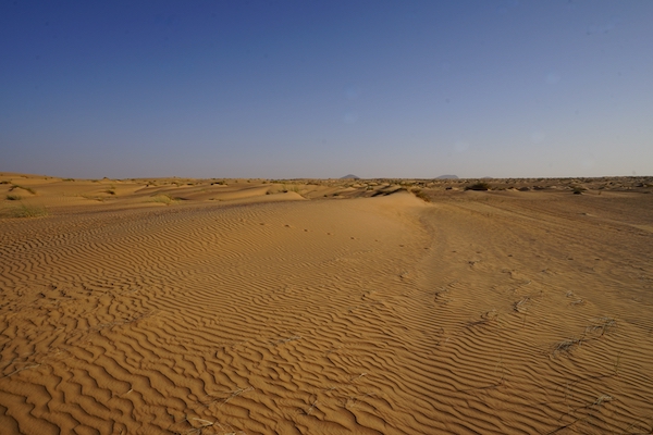 La beauté du désert n’est pas nue, mais faite de dunes, d’architectures de grès, du mouvement des ombres, des lumières. J’aperçois un horizon qui s’éloigne à chaque pas dans l’ondulation de la chaleur.
